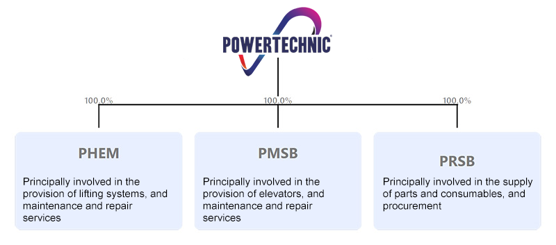 Powertechnic Marketing Sdn Bhd (“PMSB”) was incorporated in Malaysia as a private limited company under the Act on 23 May 2017 under its present name. PMSB is principally involved in the provision of elevators, and maintenance and repair services.